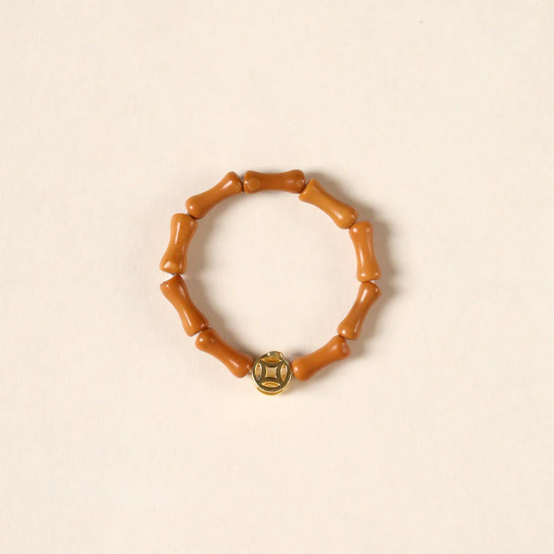 Buddha Stones Olive Pit Bead Copper Coin Inner Strength Ring